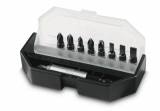 9 db bit: PH 1/2/3, PZ 1/2/3, lapos 0,6x4,5/1x5,5/1,2x6,5 mm + mágneses bittartó, műanyag dobozban